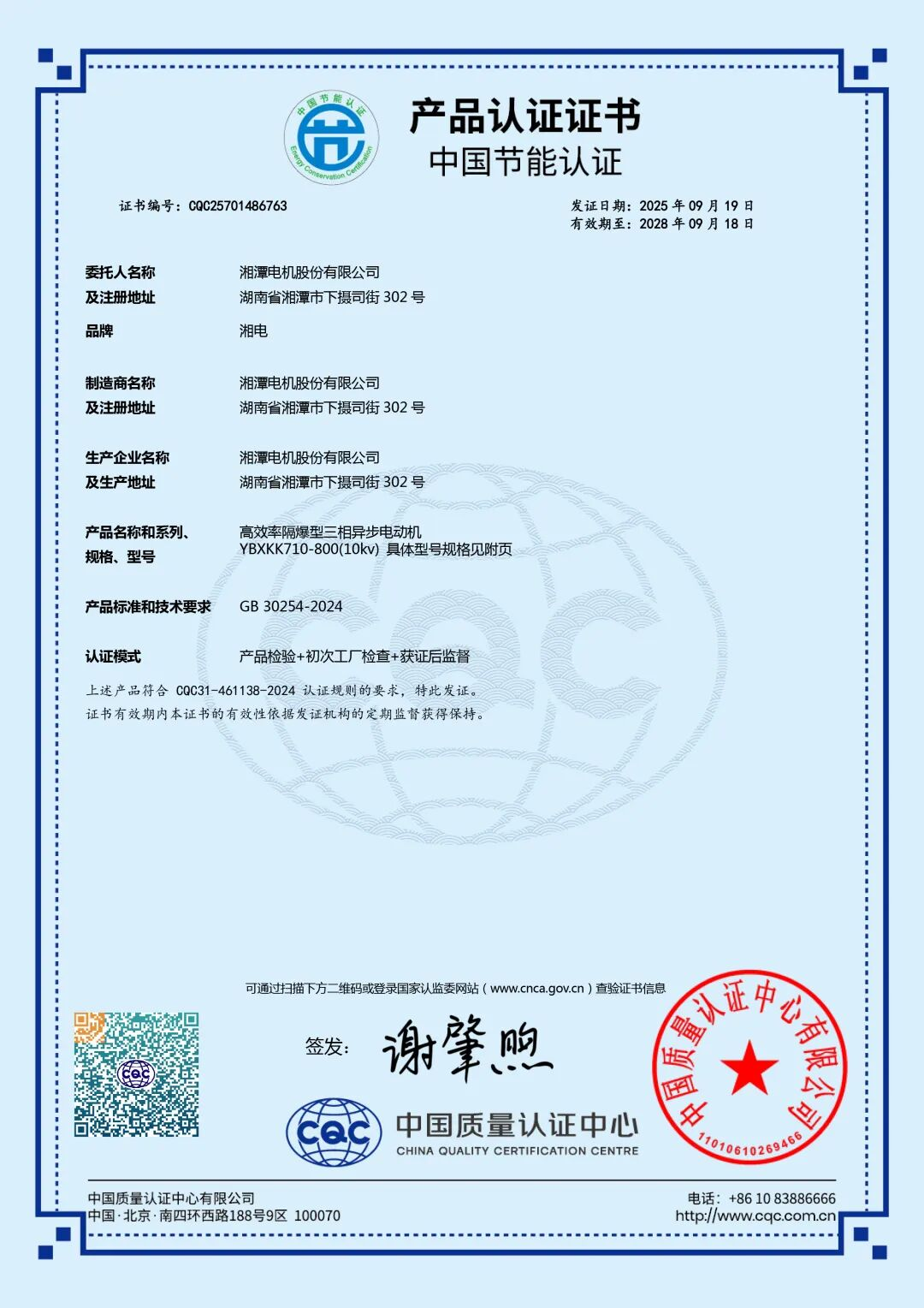 ? ? ? ?這些認證成果覆蓋公司YBX3、YBXKK、YX2KK三大系列共372個(gè)規格產(chǎn)品,全面展現了湘電股份的技術(shù)實(shí)力與質(zhì)量管理水平,也為國內高端裝備制造業(yè)樹(shù)立了“技術(shù)引領(lǐng)、質(zhì)量為本、綠色先行”的新標桿。